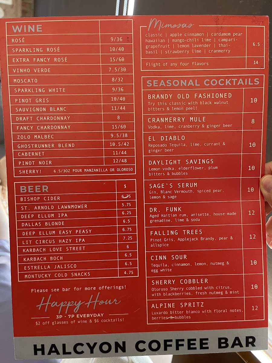 Welcome to Halcyon, a vibrant cocktail bar located in the heart of Dallas at 2900 Greenville Ave. This inviting space blends the casual charm of a café with a lively bar atmosphere, making it a perfect spot whether you’re enjoying a relaxing brunch or gearing up for a spirited evening. Halcyon’s menu is as diverse as its crowd.